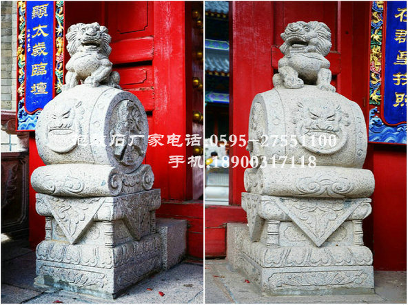 傳統建筑門前經??梢钥吹揭粚κ?/span>的抱鼓石,它是中國傳統建筑的主要構件之一,是古代房主身份、地位和房屋等級象征的裝飾件,它與門檻、門扇、門框、門簪一起產生古樸典雅的藝術效果。相傳古代打仗凱旋的將領為了顯耀其赫赫戰(zhàn)功,就將戰(zhàn)鼓放置在自家門口。后來,就慢慢地演變成以抱鼓石來代替戰(zhàn)鼓的做法。抱鼓石有擊鼓、升堂、聽政之意,一般只有衙門或官宦之宅門方可放置。 抱鼓石的造型有方和圓兩種,由兩部分組成,下部由須彌座,上部為鼓形,飾以花紋浮雕。此外,抱鼓石還是“非富即貴”的門第符號,是最能標志屋主等級差別和身份地位的裝飾品。