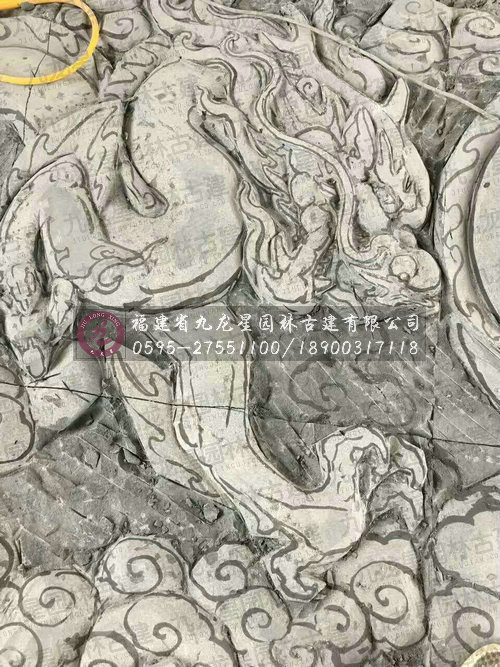 九龍星園林古建石雕九龍壁現(xiàn)場(chǎng)加工圖