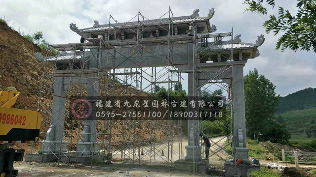 牌坊作為中國(guó)傳統(tǒng)的建筑模式,其擁有更多自己的風(fēng)格與特色,成為外國(guó)學(xué)者們研究中國(guó)建筑文化的主要途徑和方式。傳統(tǒng)石牌坊設(shè)計(jì)形式多樣,傳承到如今,牌坊更多是發(fā)揮其標(biāo)志性作用,在新農(nóng)村建設(shè)中普遍應(yīng)用。