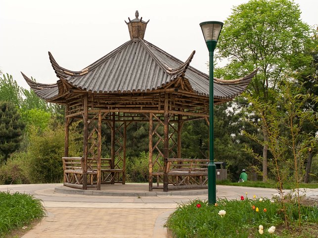 古代中國(guó)建筑是木結(jié)構(gòu)體系的建筑,所以涼亭也大多是木結(jié)構(gòu)的。木構(gòu)的涼亭,以木構(gòu)架琉璃瓦頂和木構(gòu)黛瓦頂兩種形式最為常見(jiàn)。前者為皇家建筑和壇廟宗教建筑中所特有,富麗堂皇,色彩濃艷。而后者則是中國(guó)古典亭榭的主導(dǎo),或質(zhì)樸莊重,或典雅清逸,遍及大江南北,是中國(guó)古典涼亭的代表形式。