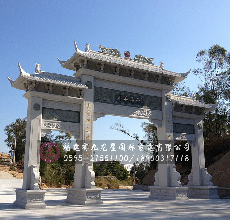 石雕牌坊即石頭修建的牌坊,是一種裝飾建筑物,也是雕刻藝術(shù)的一種。常見(jiàn)于古代陵園,如北京明代陵墓外面的大紅門(mén)前,有石牌坊一座,整個(gè)牌坊為五間六柱十一樓,結(jié)構(gòu)勻稱(chēng)和諧,造型美觀大方?,F(xiàn)代石牌坊常用于村鎮(zhèn)入口,寺廟景區(qū)入口等。主要作為標(biāo)志性的裝飾建筑物,在設(shè)計(jì)上也沒(méi)有古建石雕牌坊那么講究。