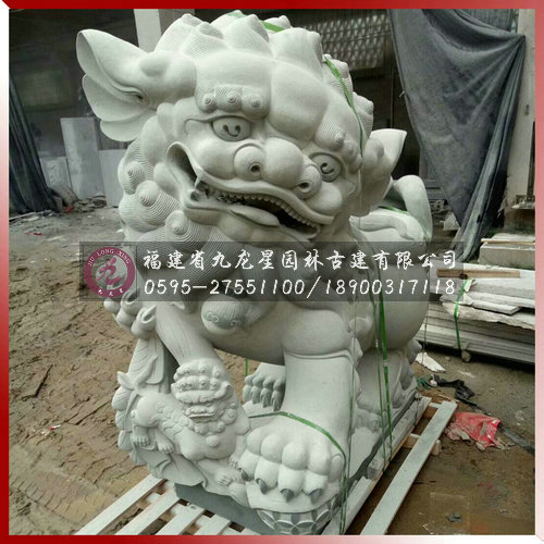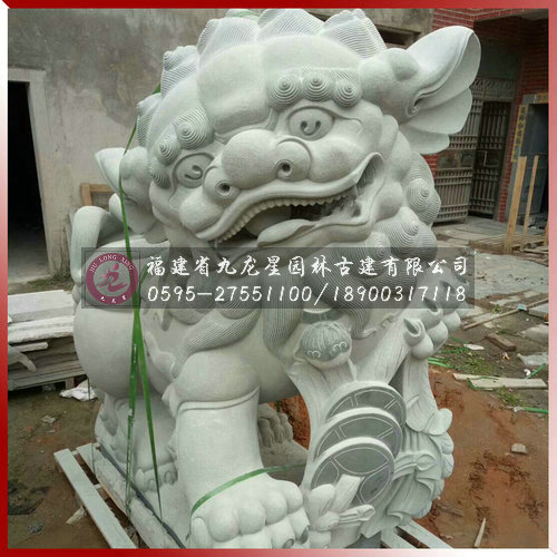 石雕獻(xiàn)線獅是因石獅造型前一般常飾一串古錢(qián)而得名,它是南方石獅當(dāng)中的一種造型。獻(xiàn)錢(qián)獅寓有招財(cái)進(jìn)寶之意,造型可愛(ài)乖巧,富有靈性。它是漢族民間最為常見(jiàn)的一種石獅造型之一,常擺放于寺廟或是祠堂門(mén)前。獻(xiàn)錢(qián)獅一般也為雌雄一對(duì),雄獅常飾于大串的銅錢(qián),寓意招財(cái)進(jìn)寶。而雌獅則戲玩著小獅子,寓意人丁興旺之意。