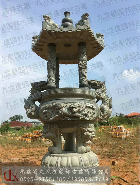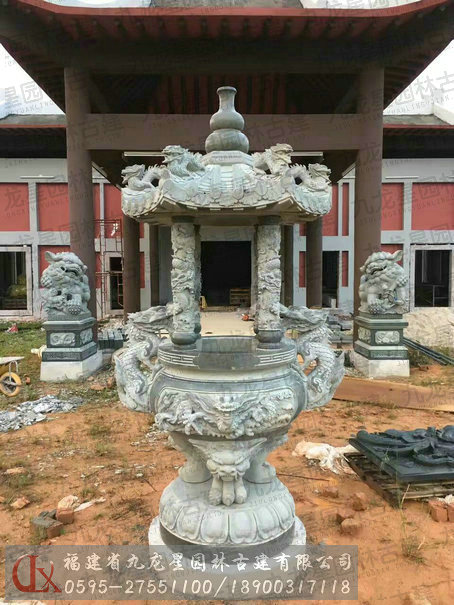一層蓋九龍香爐-馬來西亞寺廟石雕工程實景圖