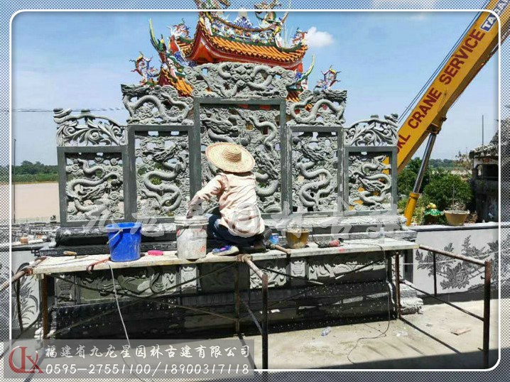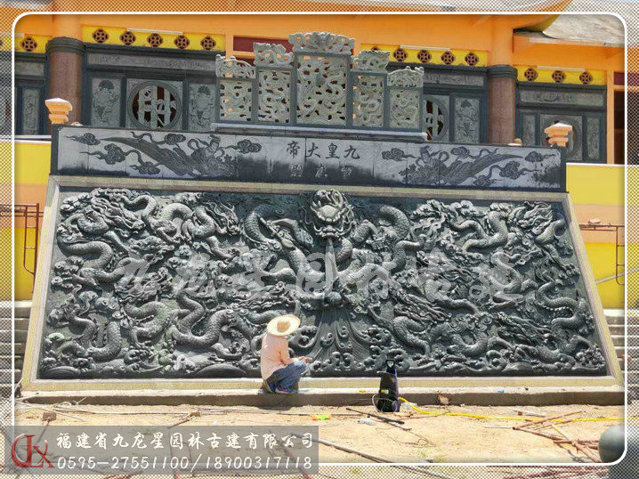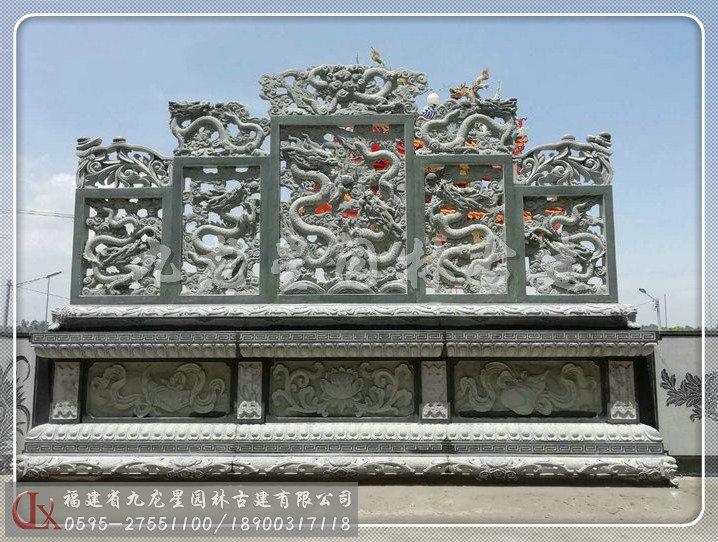 九龍星園林古建青石石雕屏風(fēng)雙面雕龍安裝