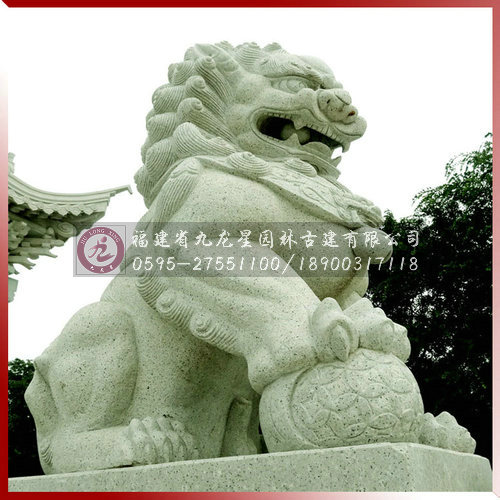 獅子并非我國土生土長的,傳說它是在東漢時(shí)期由安息國(今伊朗)傳入我國的。獅子被視為猙獰之獸,在中國傳統(tǒng)建筑中,人們根據(jù)它的兇猛性格,設(shè)計(jì)出石獅子雕塑,并賦予它以特殊的使命——護(hù)衛(wèi)。所以,今天我們看到在古代陵墓和重要建筑物的大門兩旁,甚至房梁、屋頂上,都有獅子雕塑,它們守護(hù)著主人并顯示著主人的威勢(shì)。