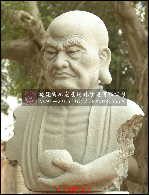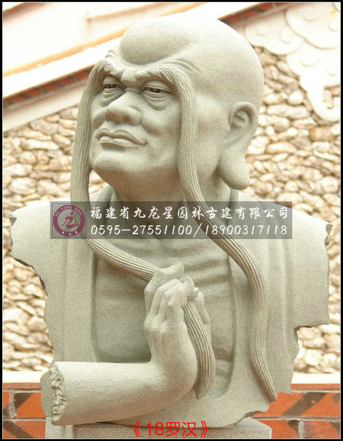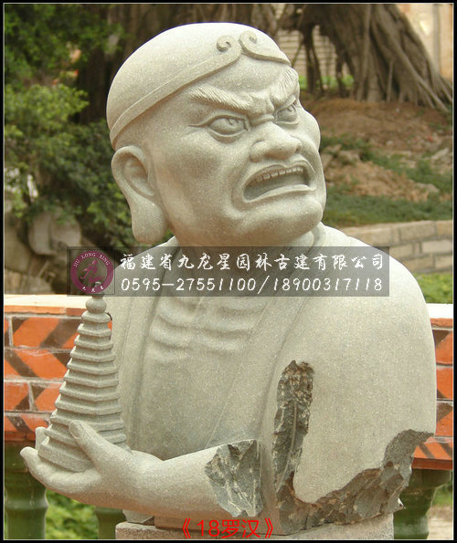 十八羅漢半身像雕塑采用天然優(yōu)質(zhì)石材花崗巖精雕而成,因?yàn)榛◢弾r的自然感染力,加上十八尊羅漢像惟妙惟肖,神態(tài)栩栩如生,使得整套羅漢雕像與園林形成渾然一體的感覺(jué)。