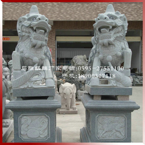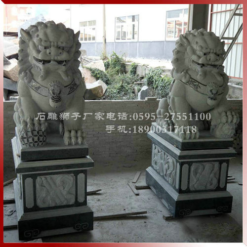 按照中國(guó)的傳統(tǒng)習(xí)俗成對(duì)的石獅左雌右雄。