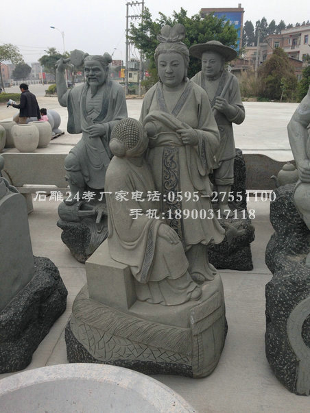 中國(guó)自古就有百善孝為先文化傳統(tǒng),我們將父母給予的一切視為是需要回報(bào)的情感, 是一種相互的愛(ài)。石雕二十四孝雕塑所述說(shuō)的二十四個(gè)感人故事,更體現(xiàn)了中華民族博大的孝道底蘊(yùn).孝感動(dòng)天,親嘗湯藥,嚙指痛心,百里負(fù)米,蘆衣順母……這些主人公都是叱咤歷史風(fēng)云的偉大人物,他們對(duì)人類的進(jìn)步所做的貢獻(xiàn)或許不同,但相同的是他們都擁有一個(gè)孝心。