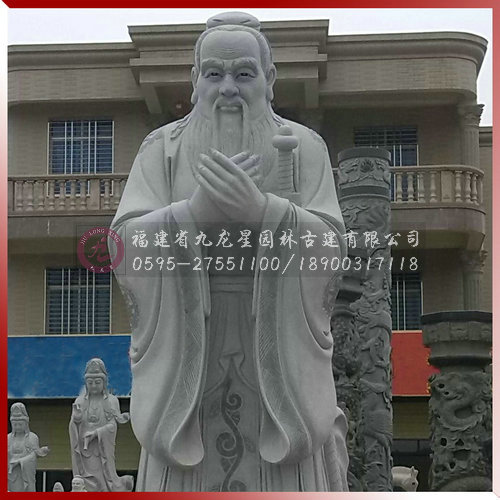 孔子雕塑不露大拇指,象征謙恭,四指并攏,代表四海之內(nèi)皆兄弟,天下大同。面部表情“溫而厲,威而不猛,恭而安”。體現(xiàn)莊嚴(yán)慈祥,和藹和諧,謙和智慧的萬(wàn)世師表形象。