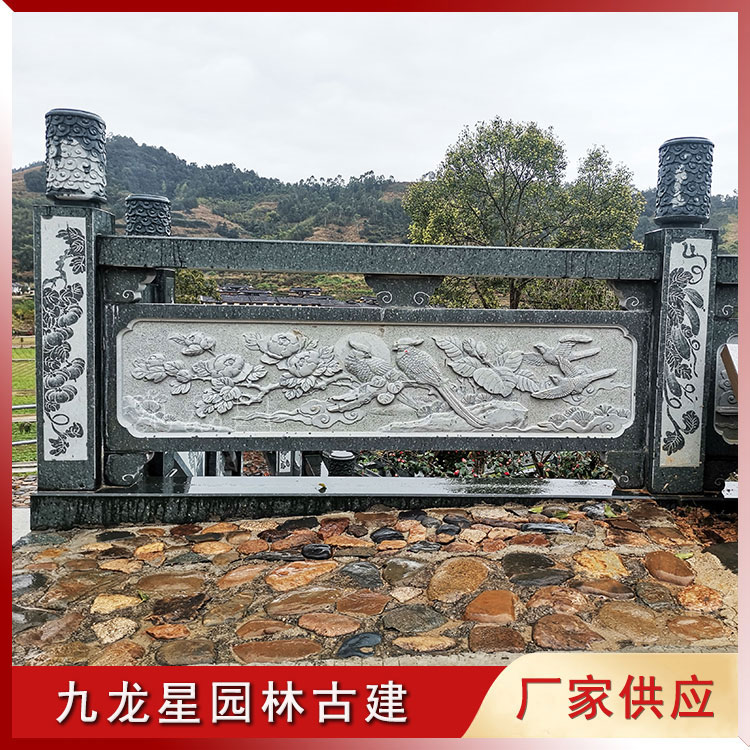 暗八仙紋飾石雕浮雕欄桿圖片 寺廟石欄桿護欄定制 九龍星