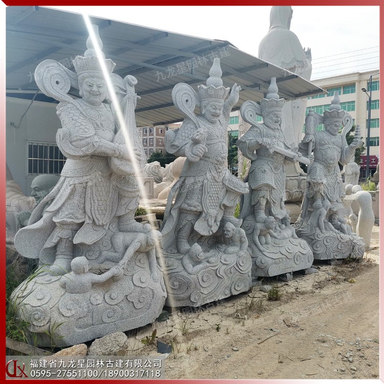 惠安石雕四大天天王圖片 寺廟天王護法神將 九龍星雕刻