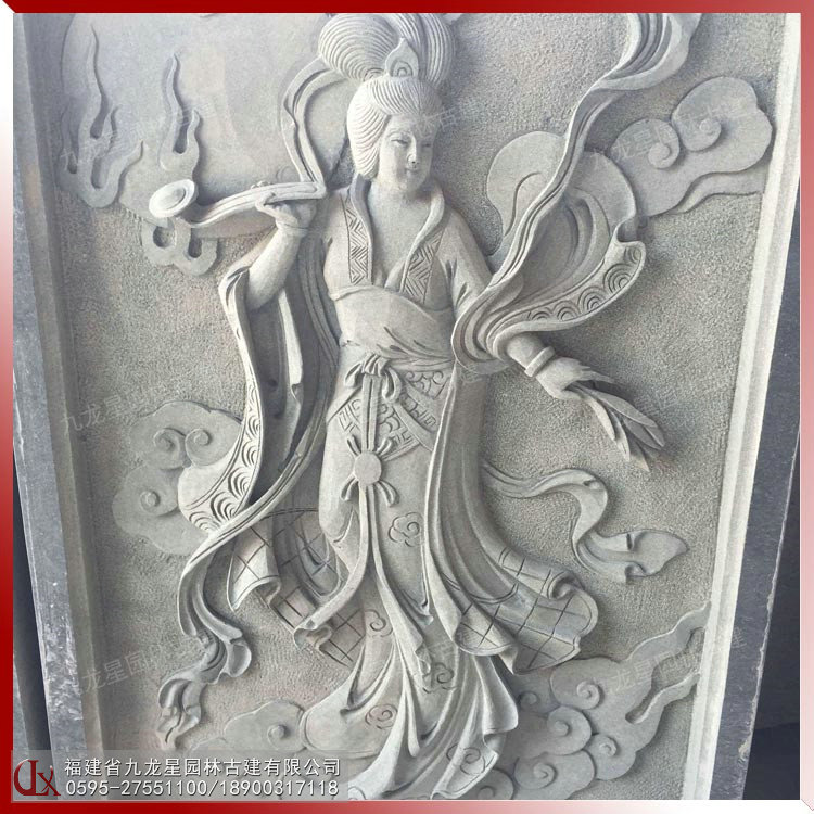 嫦娥玉兔仙女石雕 嫦娥奔月浮雕圖案 寺廟浮雕